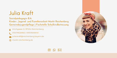 Im Markt Reichenberg leite ich als Sozialpädagogin die offene Kinder-, Jugend- und Familienarbeit. Mein Ziel ist es, junge Menschen zu unterstützen, Gemeinschaft zu fördern und Familien in verschiedenen Lebenslagen zu begleiten.